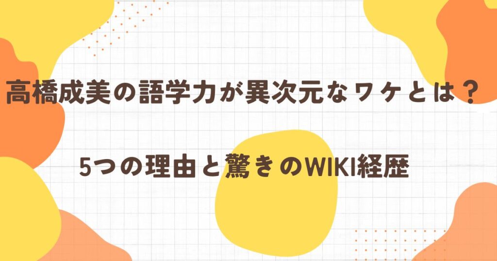フィギュアスケートで一世を風靡した高橋成美さん。 実は彼女のもう一つの魅力として注目されているのが「外国語力」です。 英語をはじめ複数の言語を自在に操り、国際舞台でも活躍してきたなぜ高橋さんは、なぜここまで語学力が高いのでしょうか? 本記事... -