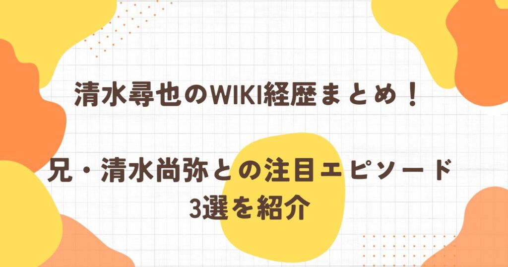 清水尋也のwiki経歴まとめ!兄・清水尚弥との注目エピソード3選を紹介