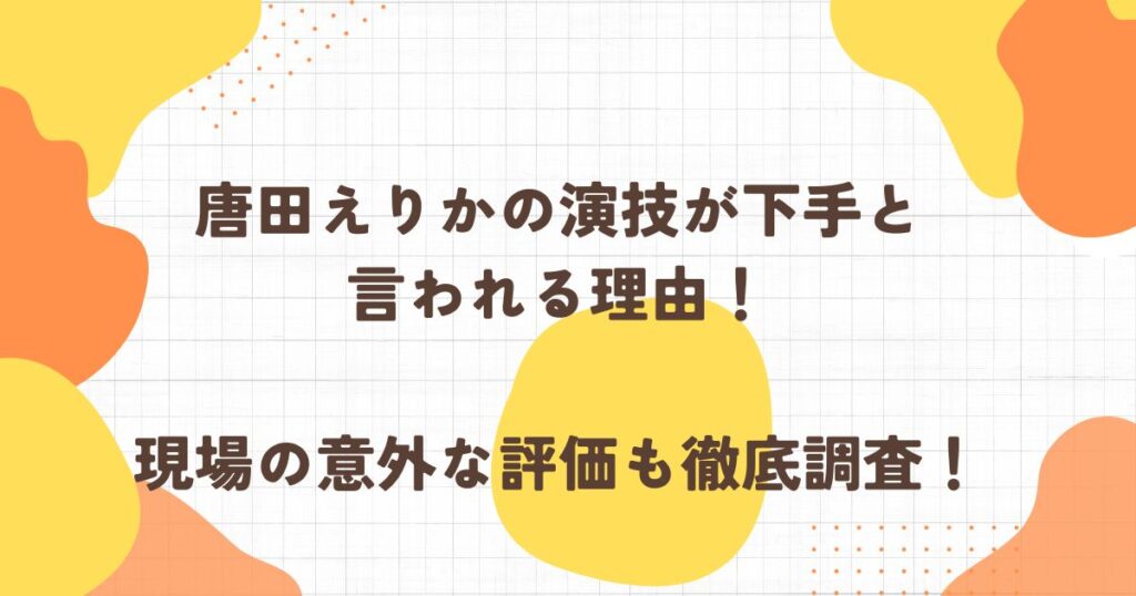 唐田えりかの演技が下手と言われる理由!現場の意外な評価も徹底調査!